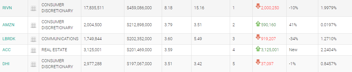 亚马逊位列第二,持仓市值约为2.13亿美元,持仓数量较上季度大增41%,占投资组合比例为3.79%;Liberty Broadband -C(LBRDK.US)位列第三;美国校园社区公司(ACC.US)位列第四,同时为该基金新建仓个股,持仓约312.5万股,持仓市值约2.01亿美元,占投资组合比例为3.59%,据悉,ACC是美国最大的公开上市的学生公寓所有者和开发商;霍顿房屋(DHI.US)位列第五。