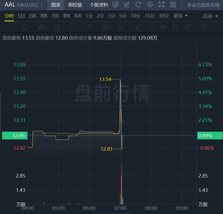 财报发布后,美国航空盘前一度涨超5%,随后快速回落。