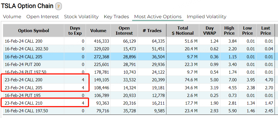 具体来看,我们发现上周五特斯拉出现了针对本周的看涨交易,最高行权价达到210美元。特斯拉本周的走势值得期待。