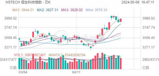 5月9日周四,港股三大指数回调2日后再度迎来强势行情。恒生科技指数午后一度大涨2.2%,最终收涨1.95%,恒指、国指分别上涨1.22%及1.61%。
