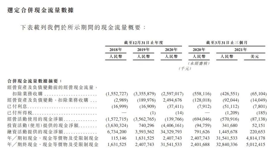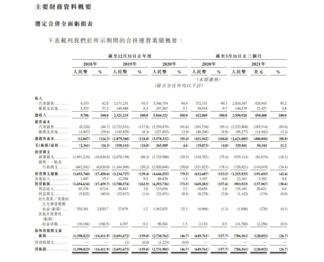 在小鹏汽车的招股书中披露,2018年、2019年、2020年和2021年的前三个月,小鹏汽车的净亏损分别为13.99亿元、36.92亿元、27.32亿元和7.87亿元,净亏损已经累计超过86亿元。同时,经营活动所用的现金净额分别为15.73亿元、35.63亿元、1.4亿元和5.71亿元。
