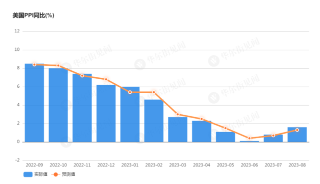 9月14日,美国劳工部数据显示,美国8月PPI同比增长1.6%,高于预期的1.3%,连续第二个月超预期上涨。环比上升0.7%,为2022年6月上涨0.9%以来的最大涨幅,前值上修至0.4%。
