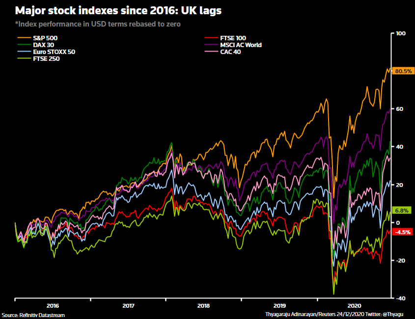 不仅如此,Principal Global Investors首席策略师Seema Shah表示,尽管贸易协议会给英国市场带来一些吸引力,但脱欧和疫情将留下的是“长期的疤痕”。她认为,“脱欧确实意味着英国可能会失去一些光泽。”瑞银英国首席投资官Caroline Simmons也表示,脱欧对英国GDP的拖累非常之大。