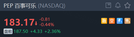 百事可乐预计全年内生性收入增长10%,此前预期增长8%,市场预期增长8.06%;