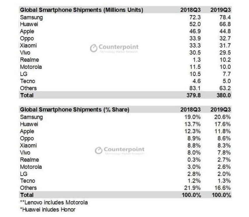 不过小米能够在欧洲取得空前进步的主要原因,还是由于竞争对手出现的“意外情况”。从Canalys给出的数据来看,华为在Q3的表现意外地出现了0增长,虽说没有出现下滑,但已经让出了市场空间。此消彼长的道理不难理解,过去数个季度出货量均保持上涨的华为没有进一步发展,小米这等新兴品牌自然能够“虎口夺食”。