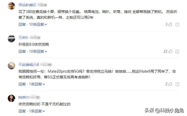那么从2016年9月华为Mate 9上市到现在已经3年多了,号称18个月不卡顿的华为Mate 9,在我们使用过程中是否丝丝顺滑呢?现在卡了吗?华为Mate9不虚的配置,加上华为官方优化EMUI9.0系统的加持下,在用户体验方面表现依旧强悍。不少网友表示,Mate 9依旧如丝般流畅,算是收获了不少用户的好感。大家来看下还在使用华为Mate 9的用户是怎么评论的?