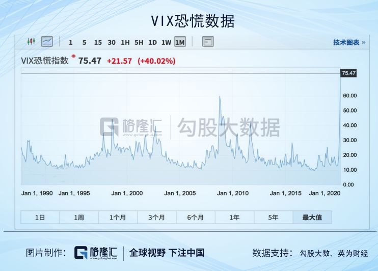 可以看出,周三周四的连续大跌,是因为市场担忧肺炎的不确定性,不知道会给美国经济带来多久的损失,所以才会造成恐慌性抛售,恐慌指数达到空前的75;而周五政府采取了有效措施,那么情况大概就跟中国一样了,在两个月左右可以控制住疫情。