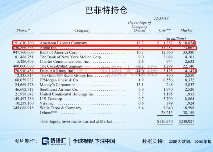 根据伯克希尔的最新年报,我认为巴菲特可能会抄底已经建仓了的苹果(AAPL)、达美航空(DAL)、美国运通(AXP),和他关注了很久没有买的波音(BA)。