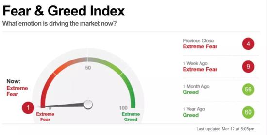 恐慌指数达到历史极值1,自这个指数设计以来还没有达到过0。