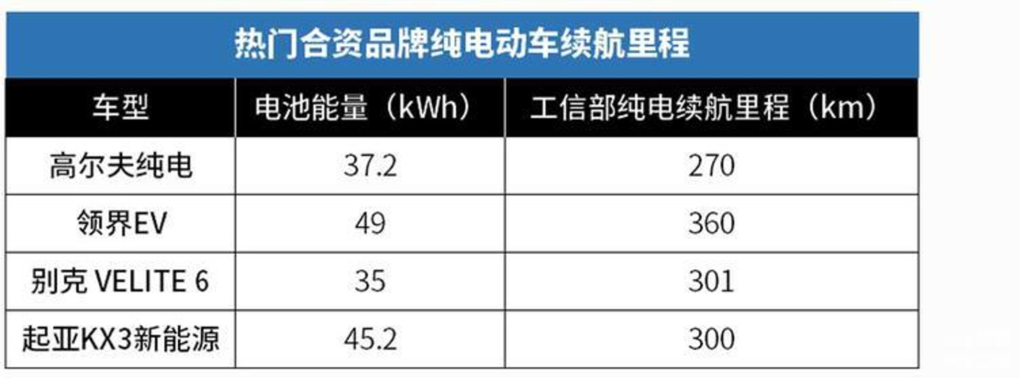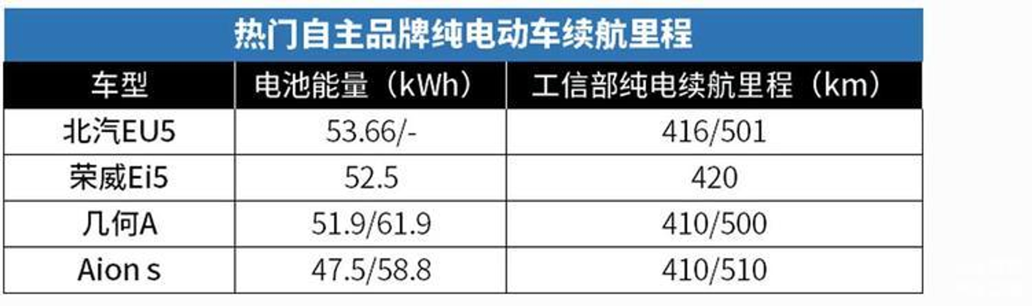 从上面的表格,我们发现,合资品牌纯电动车的续航里程普遍在300km左右,而自主品牌纯电动车的续航里程要好一些,基本在400km以上,有些超过了500km。