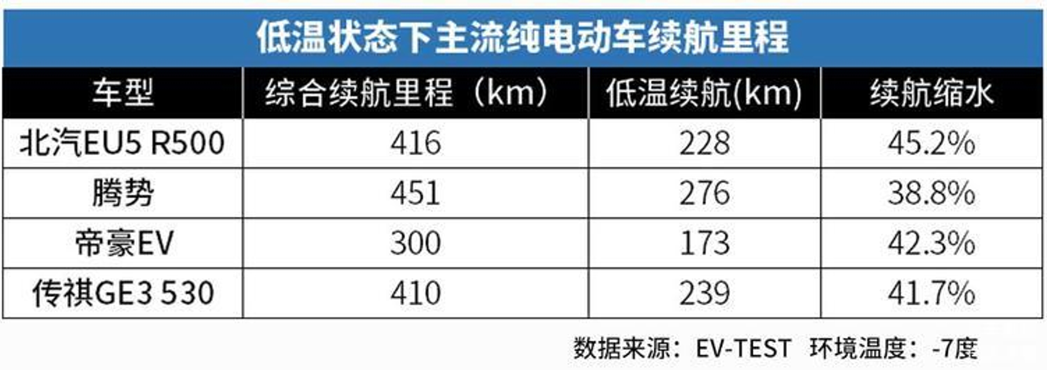 一家名为EV-TEST的国内电动汽车测评机构,根据国内的实际用车环境,对市面上主流的电动车进行了常温、高温、低温下的续航测试。