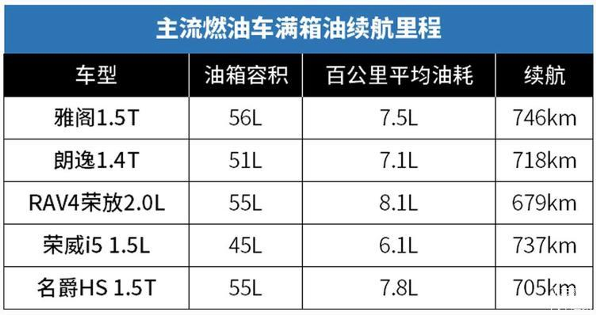 那主流的燃油车的续航里程又是什么水平呢?