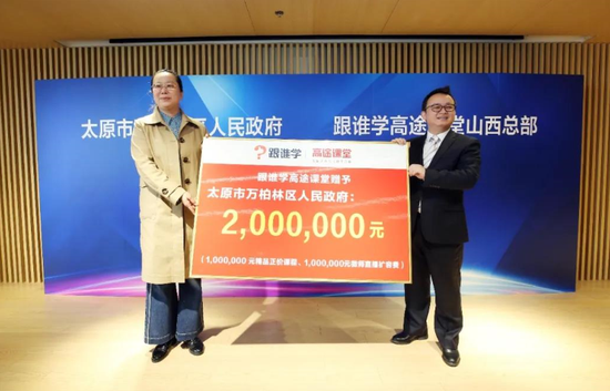 高途课堂总经理刘威代表跟谁学及高途课堂,对万柏林区政府给予的大力支持表示由衷的感谢。本次签约,高途课堂将特意为万柏林区免费赠送总价值200万元的精品名师课程及线上教育工具——微师扩容服务。刘威强调,跟谁学、高途课堂秉承科技让教育更美好的企业使命,将继续对于提升学习效率、降低学习成本和美好学习体验的技术投入和资源投入,学习、合作和研发与之相关的工具、系统、技术和教材等,让教与学更平等、更便捷、更高效。