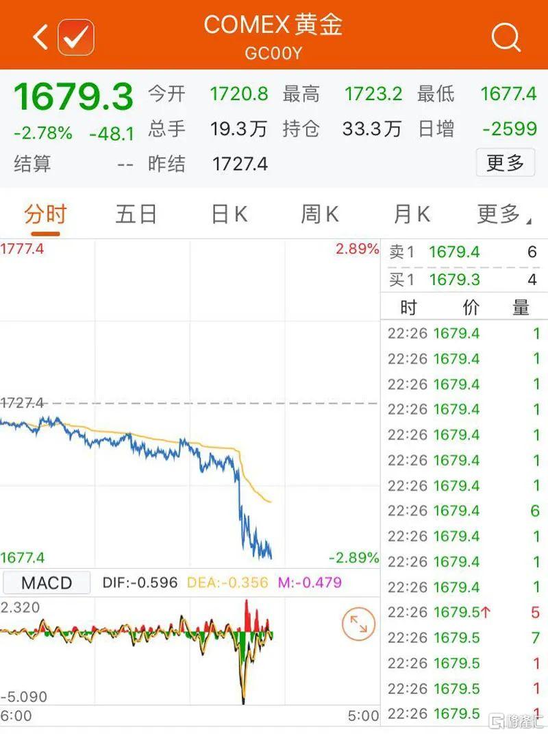 美债、日元、黄金等传统避险资产也被市场看空。纽约金价跌破1700美元关口,跌幅扩大至2.56%。