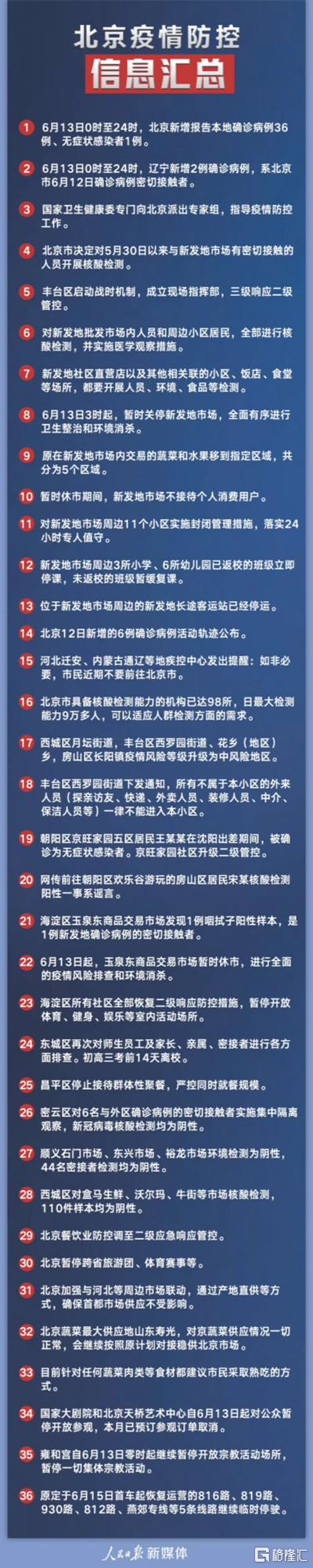 6月14日,官方披露13日北京本土比例36例,为有数据统计以来的新高水平。现有公开信息显示,新增比例大多与北京丰台区新发地市场相关。现有核酸检测信息结果显示,新发地市场内,已发现40件环境阳性样本。