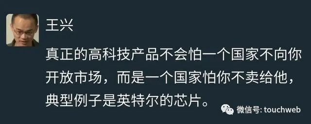 美团CEO王兴日前在饭否上表示,真正的高科技产品不会怕一个国家不向你开放市场,而是一个国家怕你不卖给他,典型例子是英特尔的芯片。