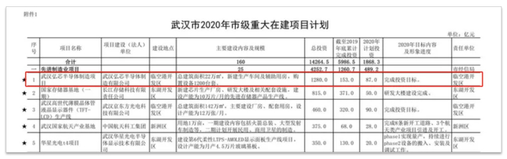2020年初,武汉市发改委发布《2020 年市级重大在建项目计划》红头文件,弘芯总投资达到了惊人的1280亿人民币,遥遥领先其他制造业项目。
