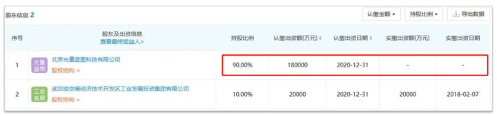 弘芯注册资本20亿,武汉政府注资两亿,占股10%,其余90%归属光量蓝图。