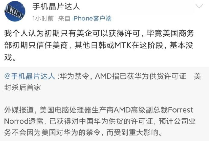 所以理论上不会有人相信M国政府会批准任何厂商对华为继续供货的申请。但令人没想到的是,在9月14日之后,英特尔和AMD就同时宣布,它们申请继续给华为供货的要求被M国政府通过了。