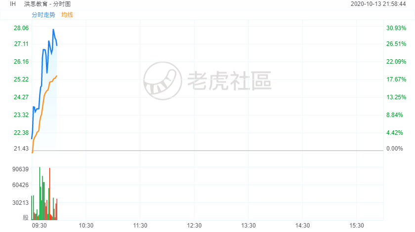 10月13日(周二)美股盘初,在线儿童教育机构洪恩教育股价高开高走,截至发稿,该股大涨23%,目前该股市值达14.45亿美元。