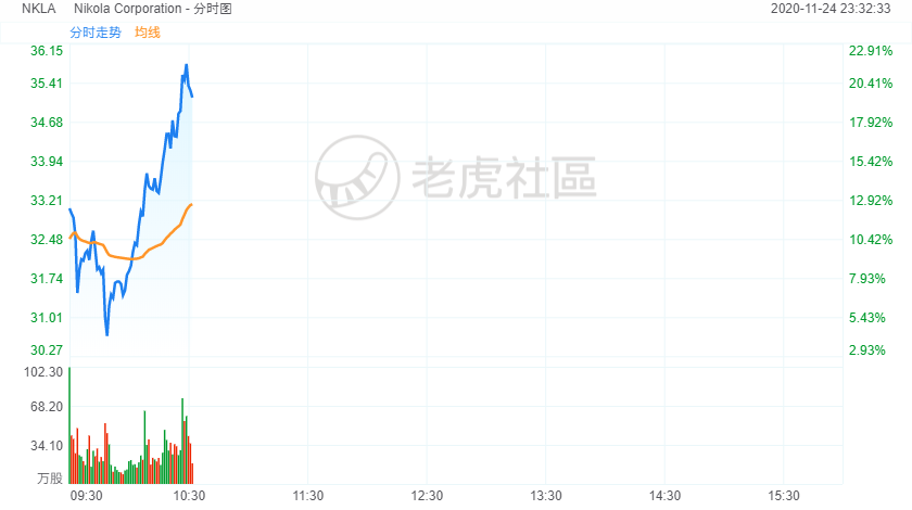 11月24日,卡车界的特斯拉Nikola盘中涨幅超过20%,创最近11周最大盘中涨幅,其竞争对手特斯拉上涨4%。