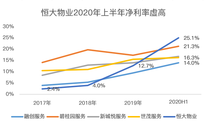 恒大物业在今年上半年斩获的25.1%的净利率,不仅大幅高于历史年度,还远超同行,老夫掐指一算,这不正常啊!