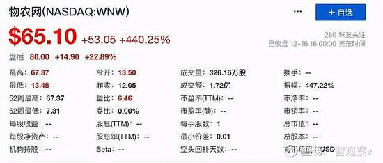 截至美股12月16日收盘,物农网股价再大涨440.25%,报收于65.1美元,目前总市值约16.28亿美元。以5美元发行价计算,上市两天,物农网股价已经暴涨1200%,这是让造车新势力都低头的涨幅。那么,物农网究竟是干什么的呢?