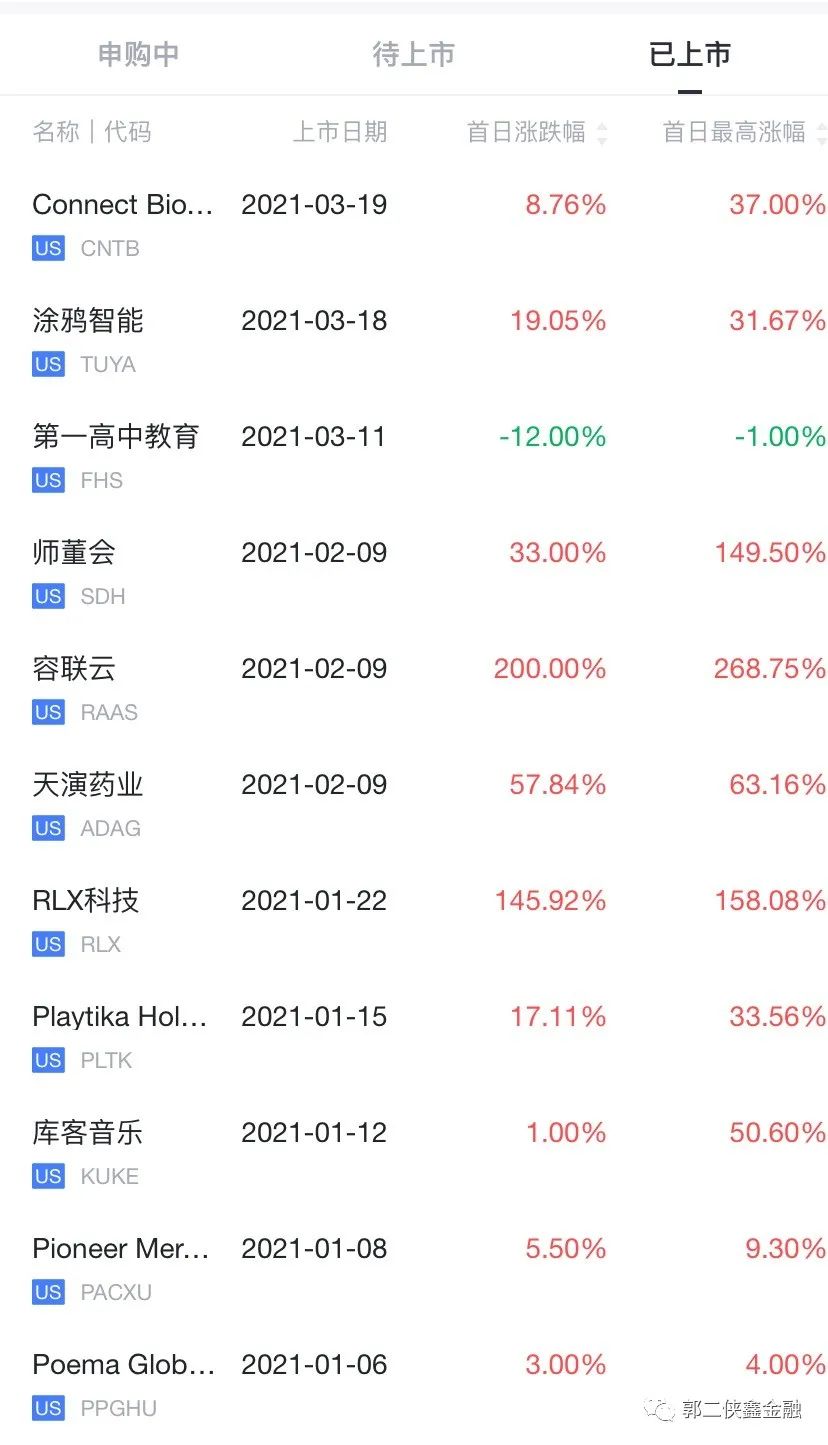 先看看2021年以来在美股上市的中概股表现,除了第一高中教育破发外,其它全部飘红,胜率非常高。