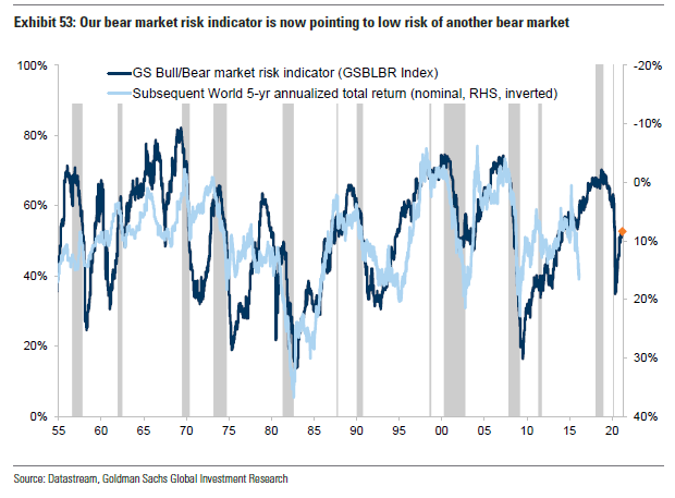 在当下的“成长”阶段,根据高盛的分析,进入新一轮熊市的风险不高。