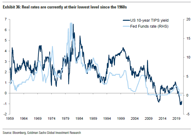回到当下,目前美国的利率是有史以来最低的,实际利率跌入负值。而且,主要经济体,尤其是美国的政策也是创纪录的宽松。