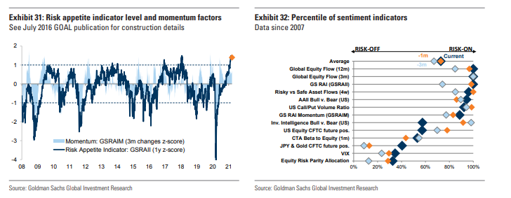 此外,高盛自己编制的投资者风险偏好指数也显示,目前,市场对风险资产非常看好。