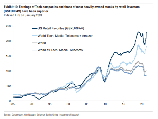 此外,与许多泡沫时期不同,目前表现优异的科技公司和散户青睐的公司的盈利能力大幅超过市场上的其他公司,因此,股价的增长很大程度上得益于公司优异的基本面。