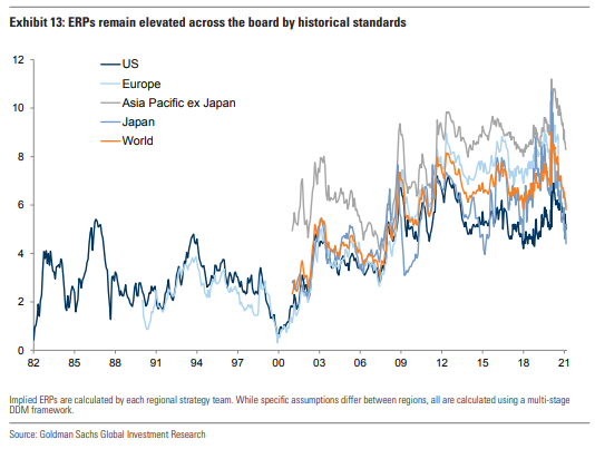 理由是,在过去20年左右的时间里,由于创纪录的低利率和股票的相对贬值,在大多数情况下,股票风险溢价仍然很高。