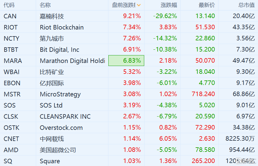 格隆汇4月13日丨嘉楠科技涨超9%,Riot Blockchain和第九城市涨超7%,Bit Digital和Marathon Digital涨近7%,比特矿业涨超5%,亿邦国际涨近4%。据Bitstamp,比特币短线走高至62000美元/枚上方,再创历史新高。
