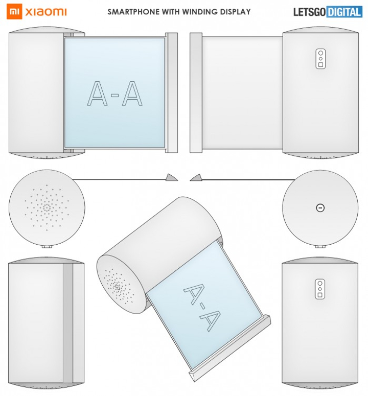 随着柔性屏与隐藏式摄像头技术的不断发展,未来智能机的外形显然不仅局限于卷曲和折叠。荷兰科技博客 LetsGoDigital 指出:2020 年 3 月,小米向国家知识产权局提交了一项有趣的外观设计专利申请,并于 2021 年 5 月 11 日正式向外界公布。从图片来看,这款概念设备拥有类似扬声器的圆柱形主体,但又集成了伸缩屏智能机的功能。