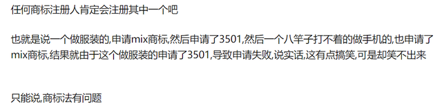 2018年,小米曾因注册第35类“MIX”商标被驳回将国家知识产权局告上法庭。此事引起网友热议,有网友认为,35类商标包含广告类服务,“任何商标注册人肯定会注册其中一个”、“商标法有问题”。和这次一样,当时的诉讼以小米败诉为结局。