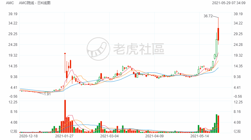 不过,虽然AMC未能延续前几日的大涨,但截止收盘AMC本周累计涨幅仍然达到116.47%,而年内涨幅更是达到1133%。