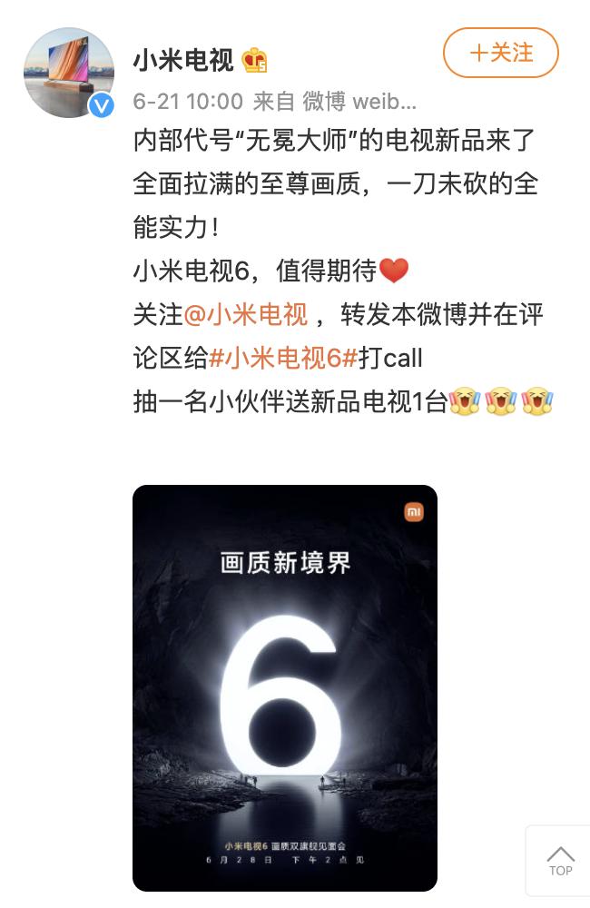 这不,小米就宣布将于 6 月 28 日带来全新的小米电视 6 至尊版。
