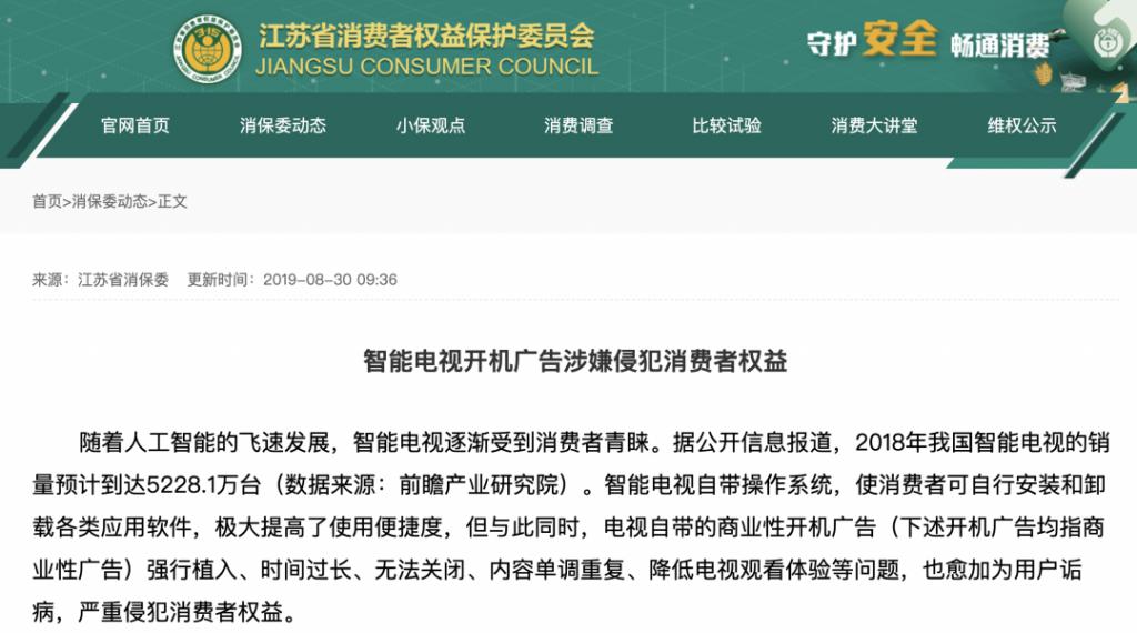 2019 年,江苏消保委针对强制开机广告展开了一次深度调查,引起不小的波动。
