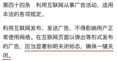 不管行业现状如何,开机广告这个东西,法律已经给了我们明确的答案:加广告可以,但必须得事先告知,且提供显著的一键关闭按钮。