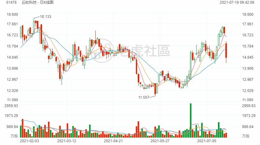 丘钛科技低开低走,现报14.9港元,大跌11.52%,暂成交1499万港元,最新市值176亿港元。