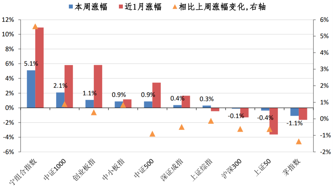 兴业证券统计的数据显示,“宁组合”已经取代“茅指数”,坐上A股市场头把交椅。近一个月,“宁组合”累计上涨11%,超出大盘逾10个百分点,而“茅指数”累计下跌近2%。本周“宁组合”涨幅5.1%,“茅指数”继续下跌1.1%。