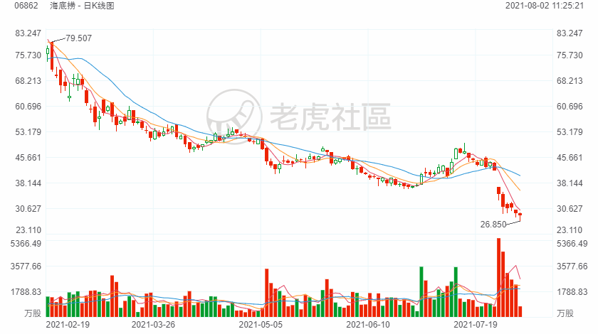 特别是在后疫情的冲击下,海底捞的“中年危机”显现,自今年2月以来,海底捞的股价一路下跌。