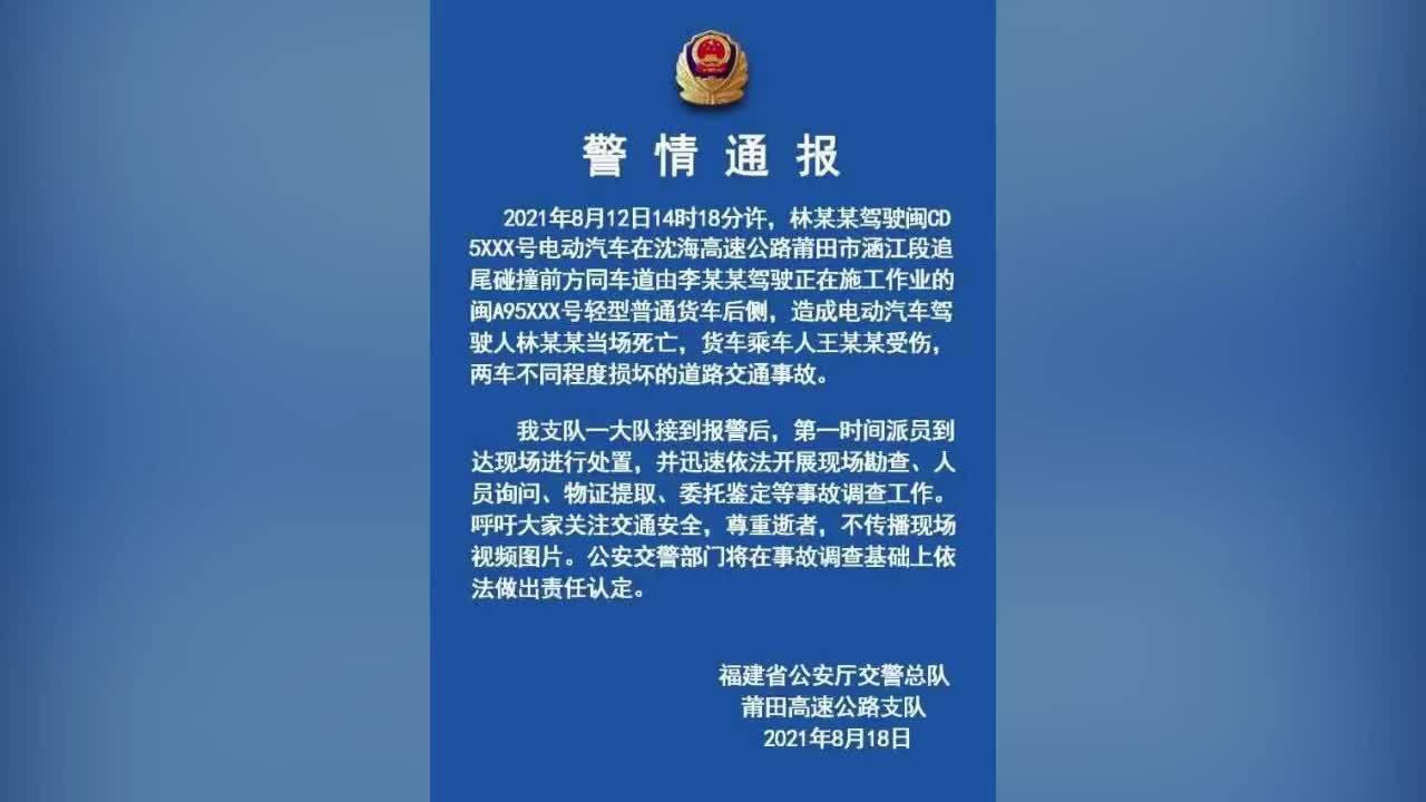 福建莆田交警通报蔚来自动驾驶车祸事件:已开展调查,将依法做出责任认定