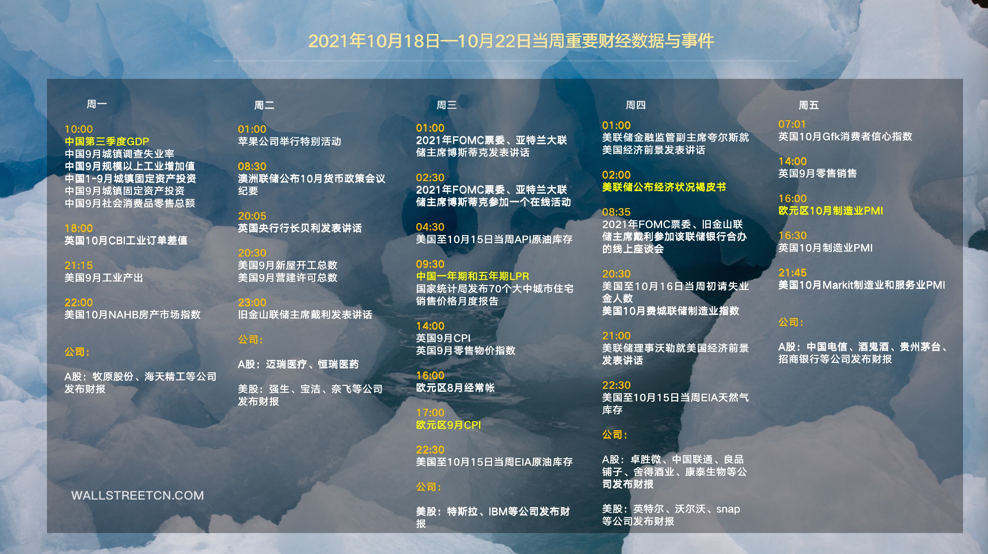 10月18日至10月22日当周重磅财经事件一览,以下均为北京时间: