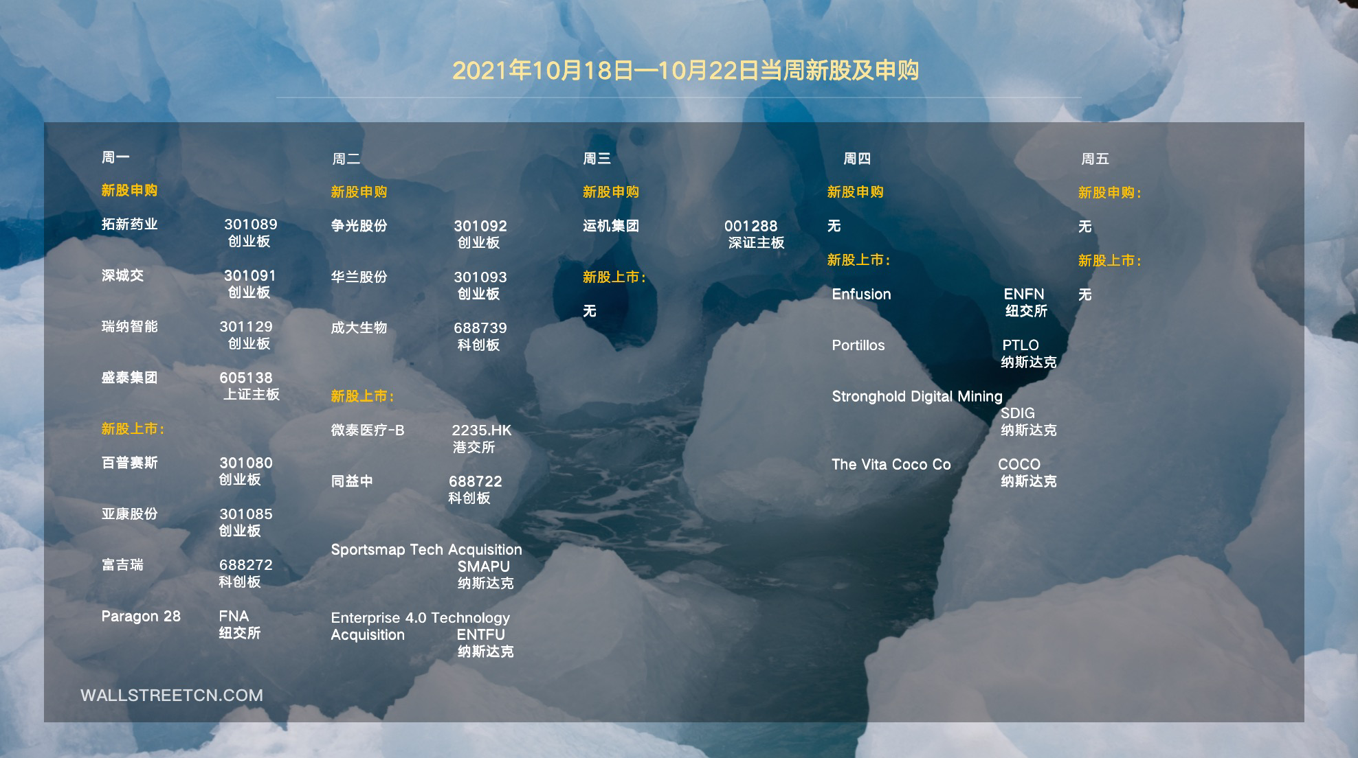 下周,将有四只新股上市,分别是N百普、N富吉瑞、N亚康、微泰医疗-B;另有盛泰集团、拓新药业、深城交、瑞纳智能、争光股份、成大生物、华兰股份、远机集团八只股票申购。
