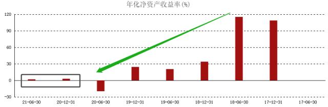 海底捞净资产收益率ROE处于显著下行状态,2018年上半年ROE为115.14%,2019年同期降至20.45%,2020年上半年直接亏损。2021年上半年最新ROE为1.8467%,基本处于盈亏平衡的状态。