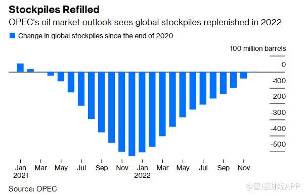 欧佩克分析报告预计,全球石油库存在未来一年不断增加,几乎抵消了2021年出现的缺口。