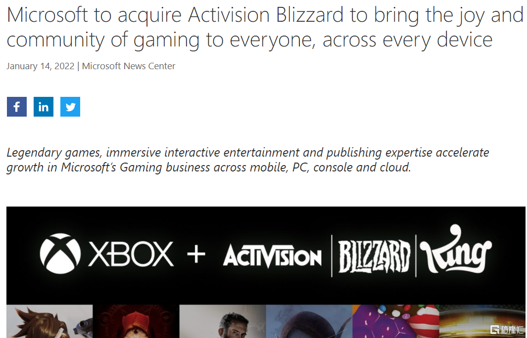 据微软透露,相关交易还要满足一些成交条件,以及监管部门和动视暴雪股东的批准,预计将在2023财年完成,交易完成后将增加微软的每股收益(non-GAAP),目前交易已得到微软和动视暴雪董事会的批准。