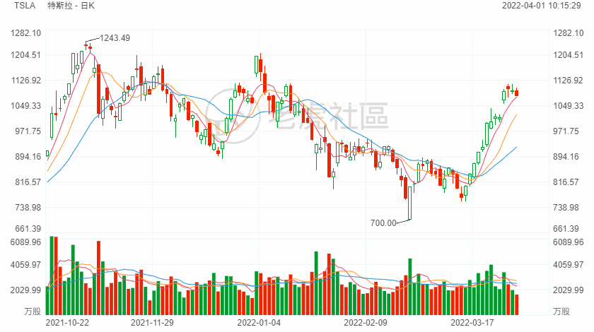 在宣布拆股计划后,特斯拉股价周一大涨了8%。该股周四下跌1.5%,收于1077.6美元,今年迄今下跌约10.2%。